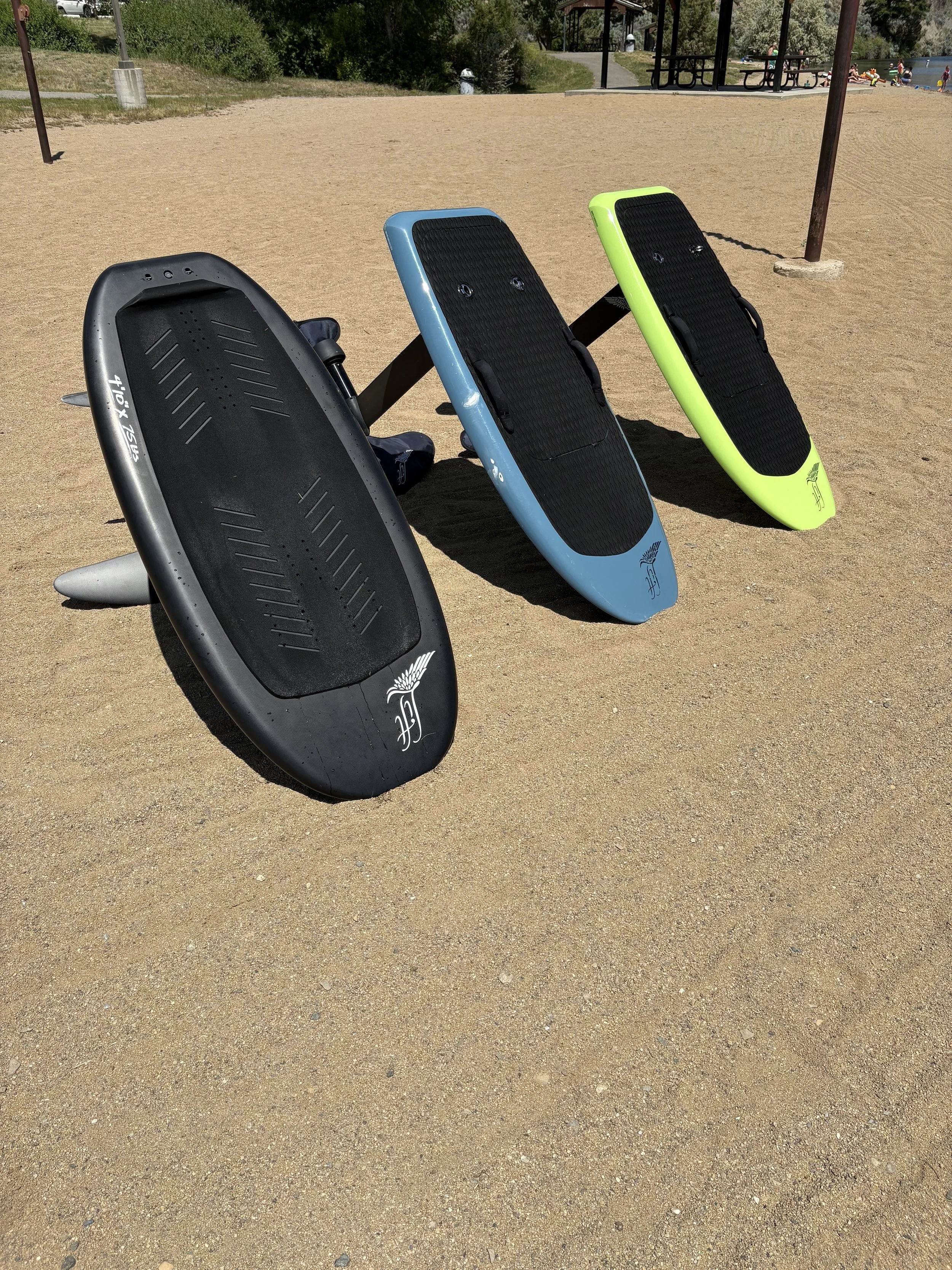 Grab a friend and take flight together with our Dual or Triple eFoil Package. Ride side-by-side, swap boards, and compare different wings and setups as you go.
